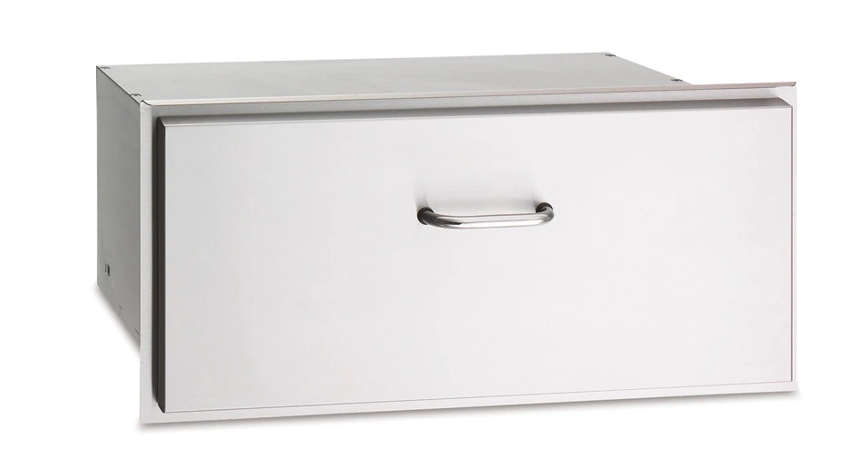 The American Outdoor Grill 30″ Masonry Gourmet Drawer is a great outdoor kitchen complimentary accessory.